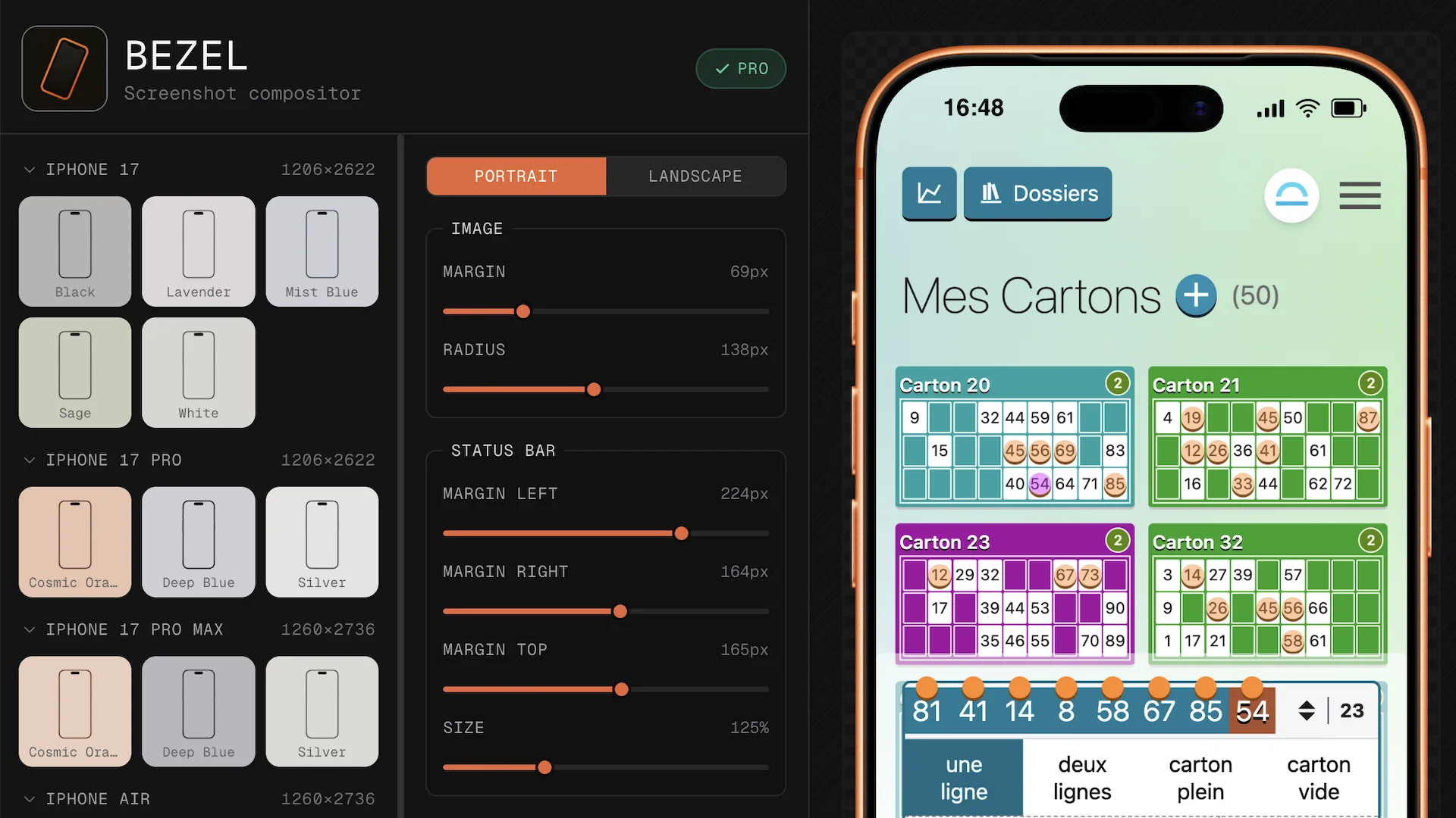 Drop the screenshot into Bezel, pick the matching device frame, and export a polished mockup ready for the App Store or Google Play.